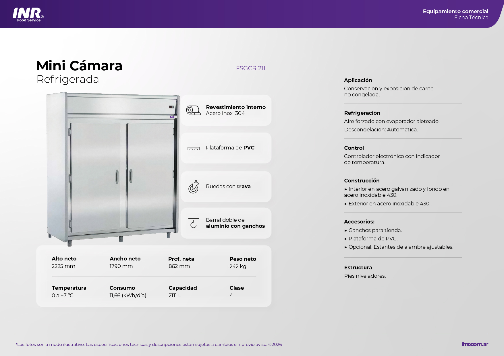 Equipo diseñado para la conservación segura de carnes frescas, ideal para carnicerías, supermercados, restaurantes y cocinas industriales que requieren control preciso de temperatura en espacios reducidos. Su diseño compacto permite una óptima capacidad de almacenamiento sin ocupar grandes superficies, garantizando la correcta cadena de frío y la calidad del producto.