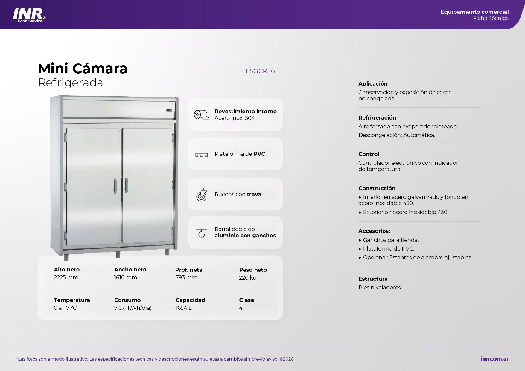 Equipo diseñado para la conservación segura de carnes frescas, ideal para carnicerías, supermercados, restaurantes y cocinas industriales que requieren control preciso de temperatura en espacios reducidos. Su diseño compacto permite una óptima capacidad de almacenamiento sin ocupar grandes superficies, garantizando la correcta cadena de frío y la calidad del producto.
