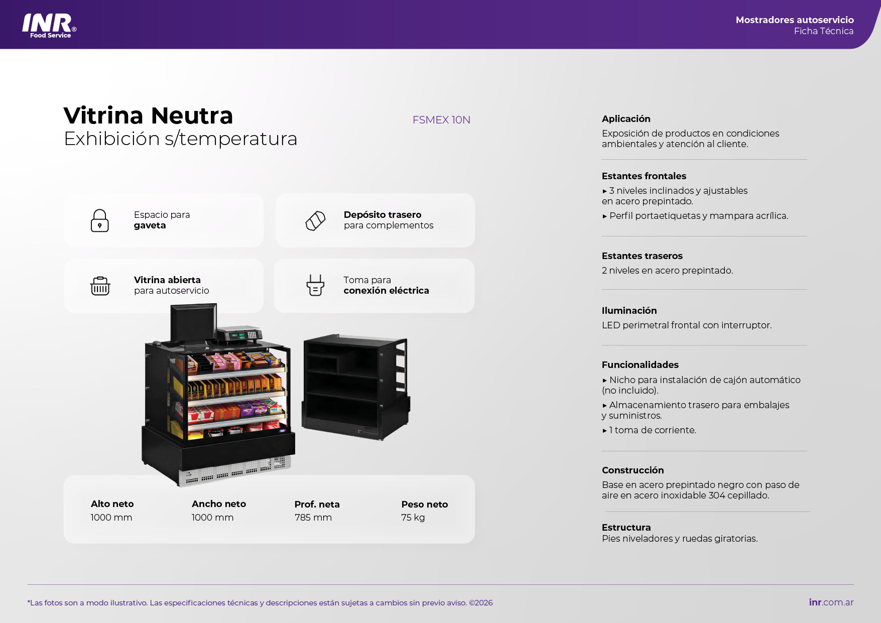 base superior reforzada para la colocación de caja registradora, balanza o sistema POS. Ideal para snacks, golosinas, panificados, productos de impulso y mercadería de mostrador. Su diseño compacto y funcional la convierte en una solución ideal para