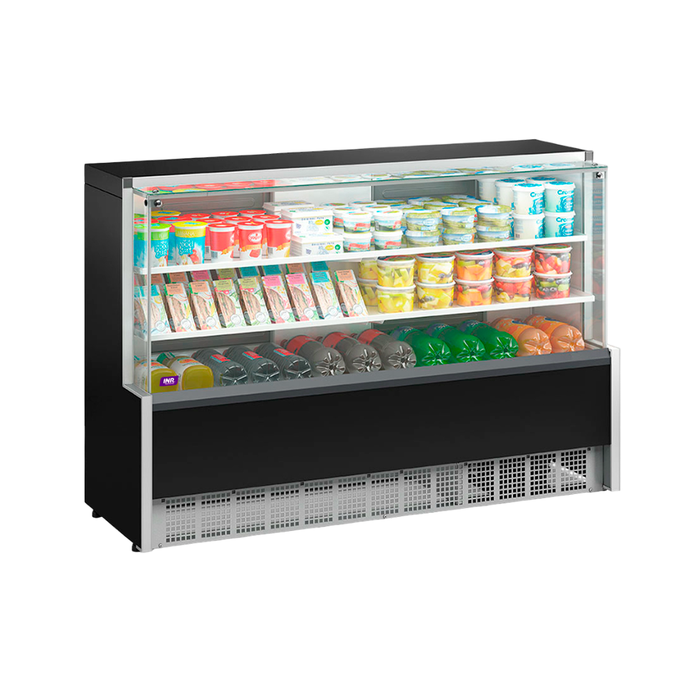 Su frente vidriado de diseño moderno y su estructura en color negro aportan una imagen profesional y distinguida al punto de venta. Su amplio espacio de exhibición y su sistema de refrigeración eficiente la convierten en una pieza clave para entornos comerciales exigentes.